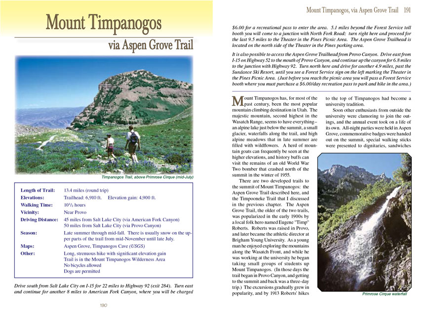 mountain, second highest in the Wasatch Range, seems to have everything-an alpine lake just below the summit, a small glacier, waterfalls along the trail, and